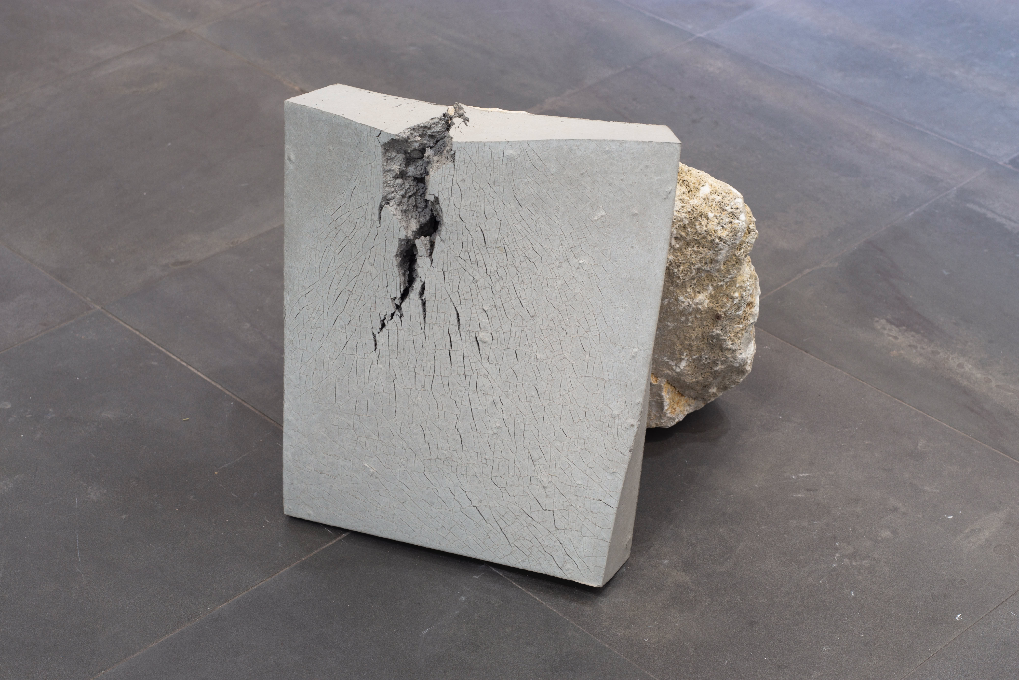 This artistic dialogue between São Paulo-based Brazilian artist Luiza Crosman (b. 1987) and Vienna-based Austrian artist Christoph Weber (b. 1974) features works addressing both the distributed nature of the climate emergency and more localized, specific issues. Crosman’s video piece Átropos Sky (2022) is a research-driven exploration of the sky as an interface for new forms of collectivity, emphasizing the roles of women as figures of foresight and future-telling. Weber’s work, Touch Fragments, Contact Print (Limestone Quarry of the Cement Industry) (2022), presents a life-size depiction of an extraction surface: a fractured limestone wall with two vertical boreholes, molded in translucent material and exposed on analog photographic paper.