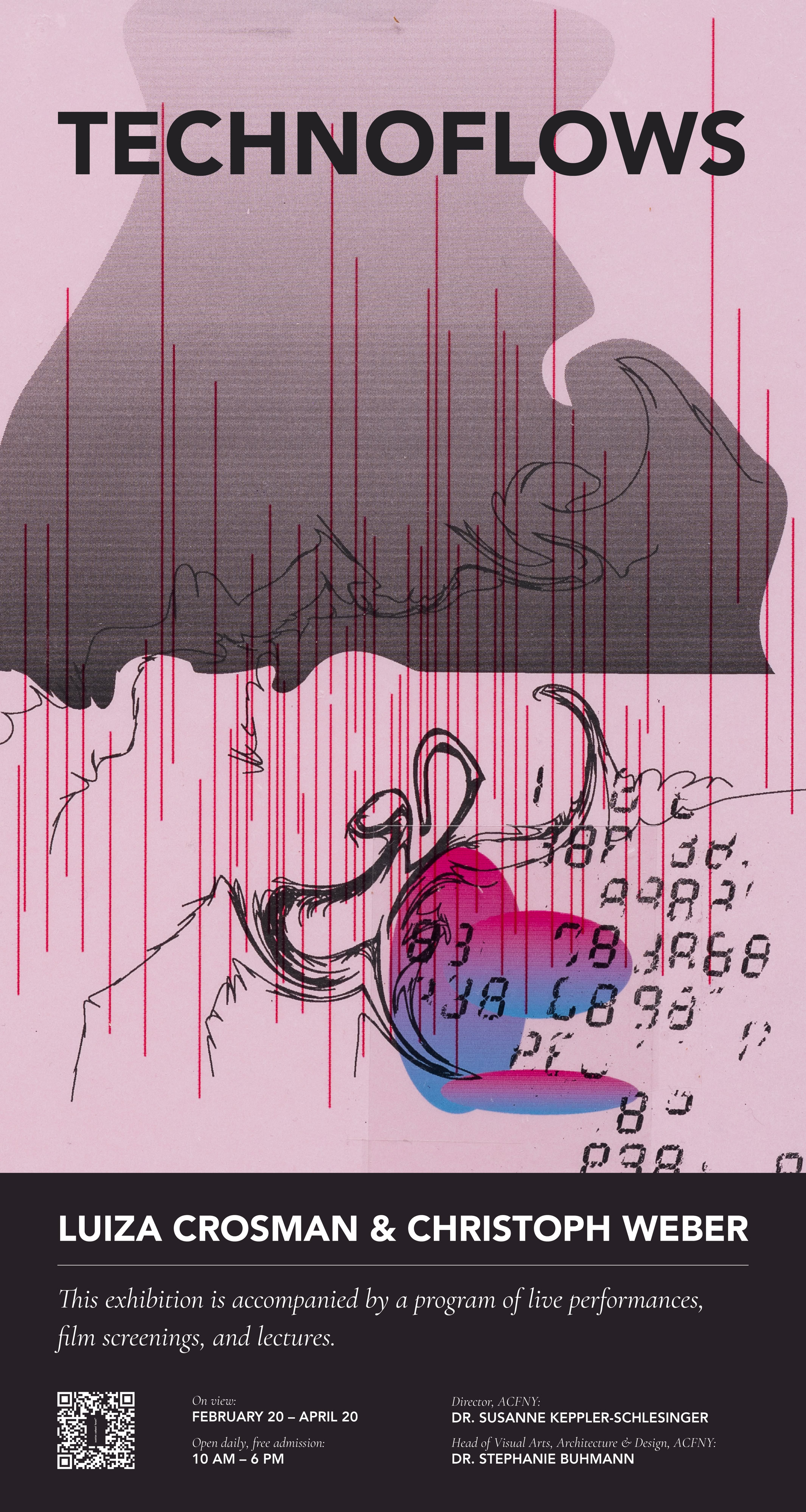 The Austrian Cultural Forum New York proudly presents “TECHNOFLOWS: Luiza Crosman and Christoph Weber”, an exhibition that delves into critical themes of climate governance, planetary forecasting, and resource extraction, framed through the lens of the technosphere. This concept refers to the interconnected system of technologies that operate almost autonomously, metabolizing energy and shaping the Earth as a geological force. By engaging with this idea, the exhibition examines how technological systems influence the environment and humanity’s shared future.
