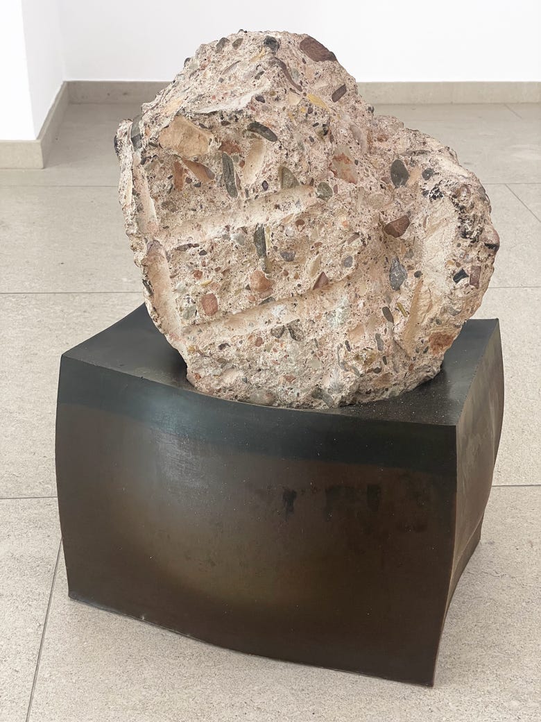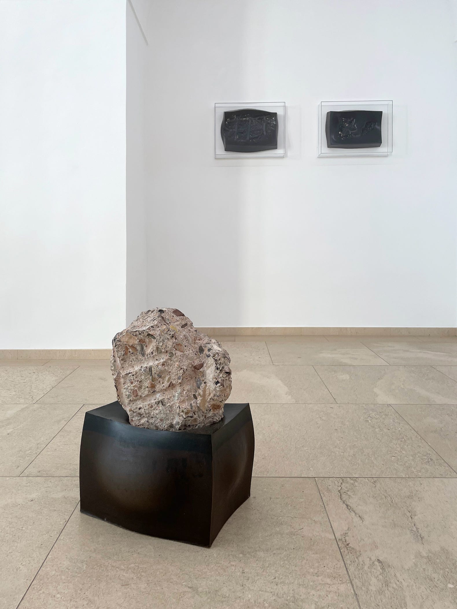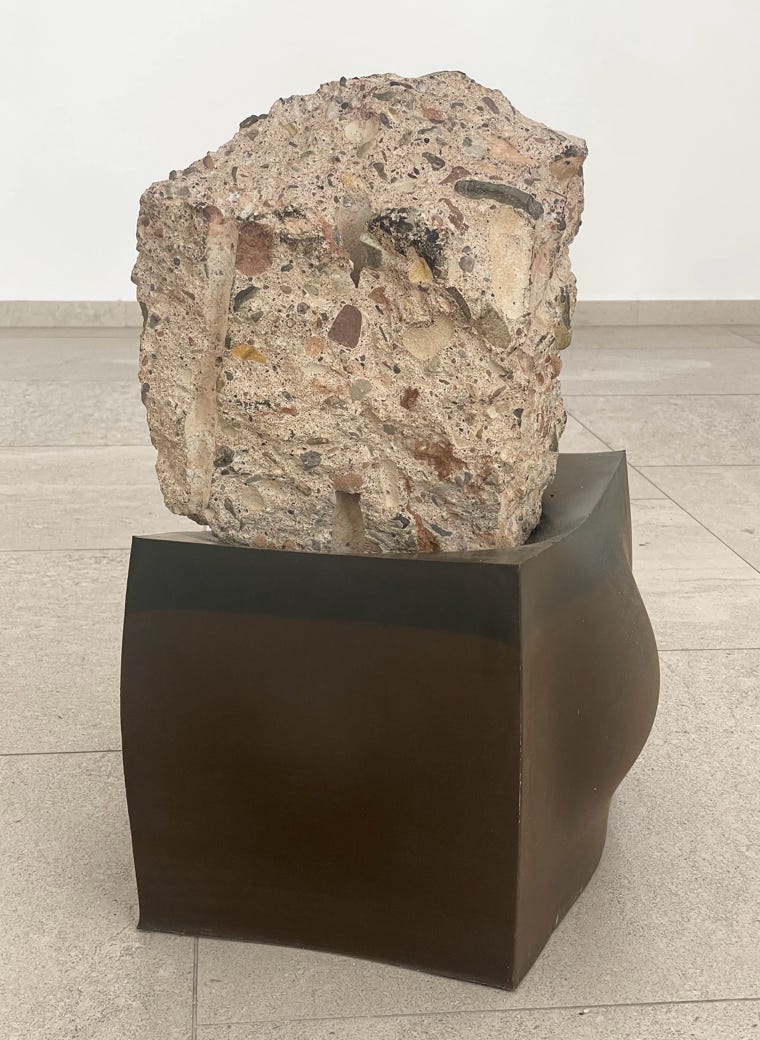 Concrete from a landfill, wood tar, beeswax, paraffin wax, colophony, 50 x 39 x 34 cm
